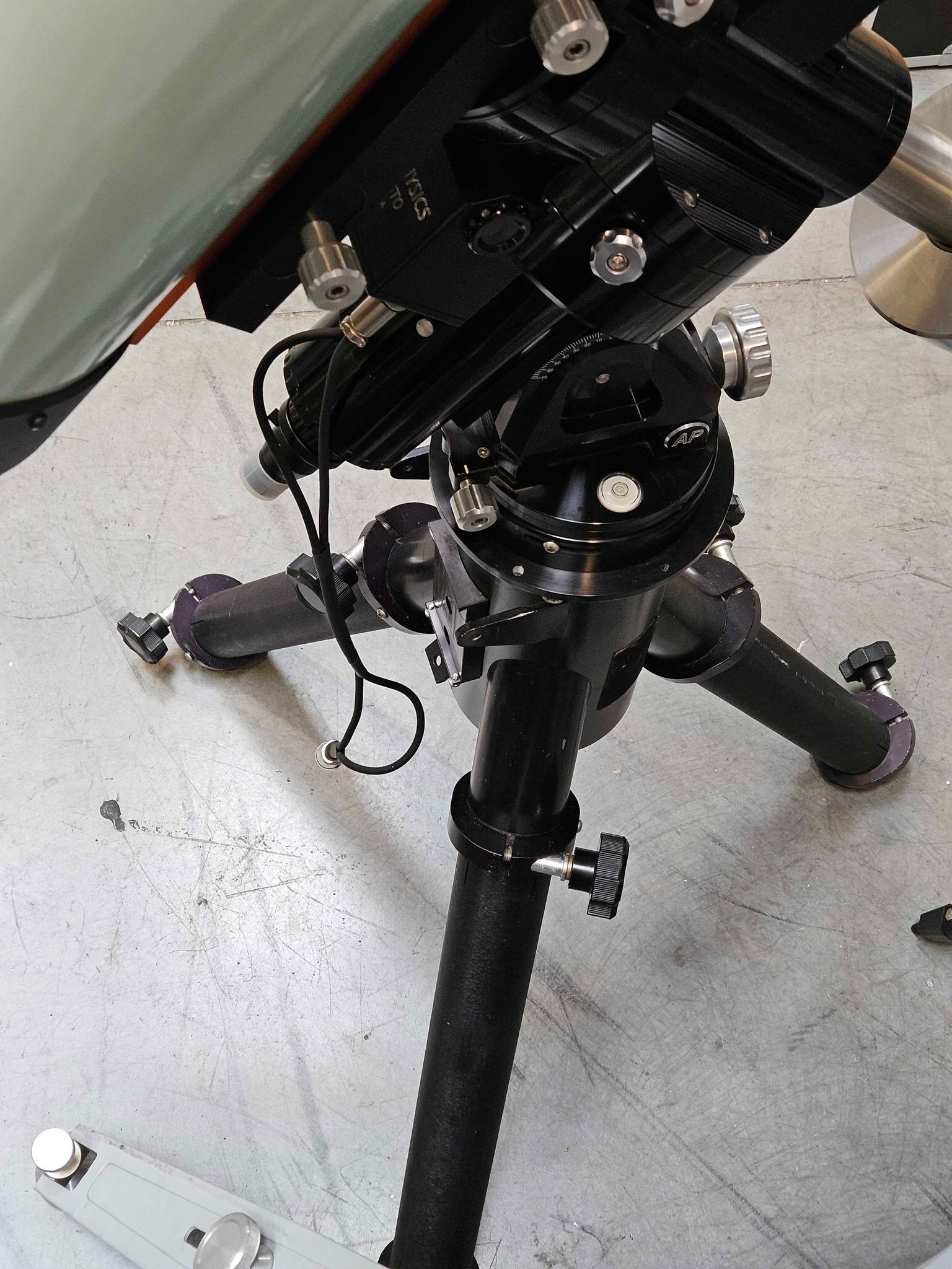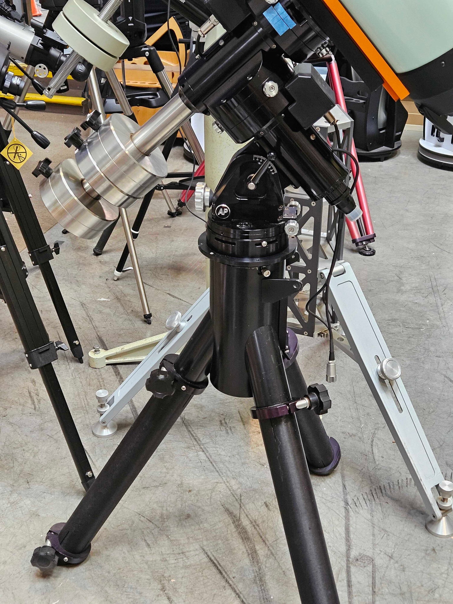 This mount is in great condition. There are minor cosmetic imperfections, but it works as new. Comes with: AP Mach1 GTO mount, Losmandy MA top and tripod legs, Keypad hand controller, GTOCP3 control panel, Losmandy polar scope, Losmandy 16" easy balance dovetail w/ 3 clamps, 2 18lb counterweights, and 1 5lb counterweight.
