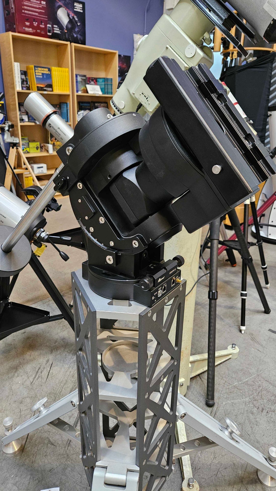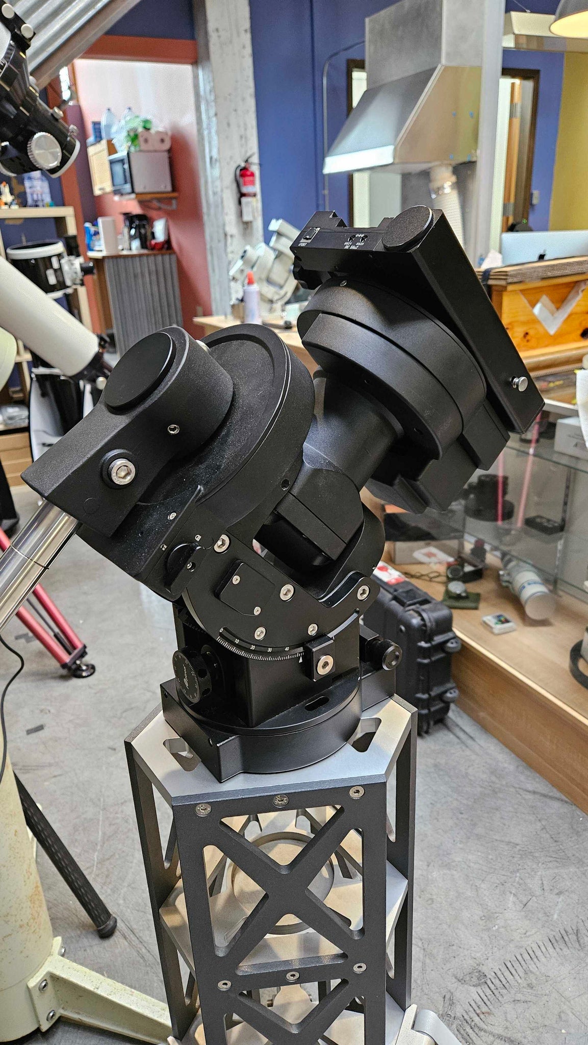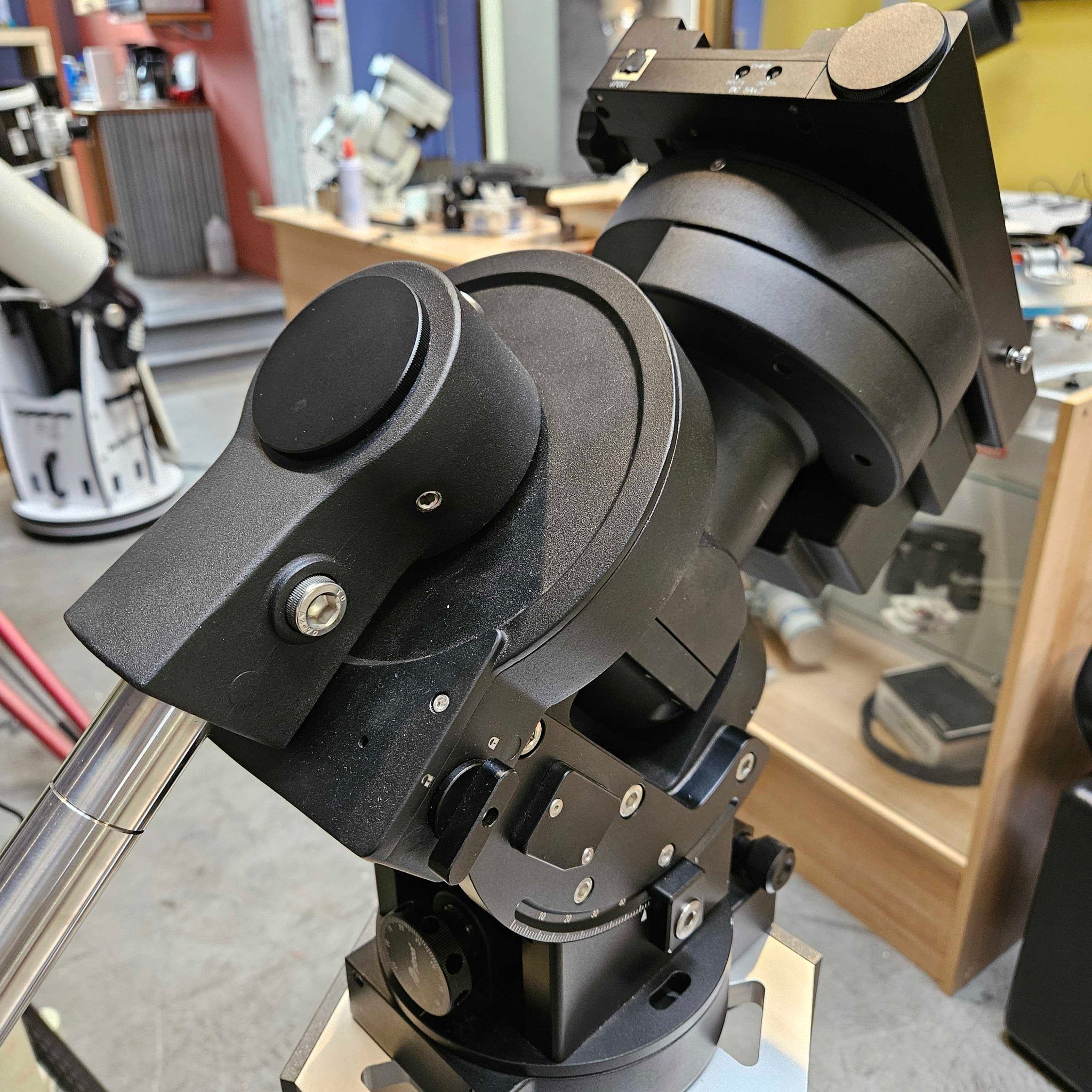 This mount is in great condition. There are very minimal signs of use on this mount head. Does not include optical tube, tripod or pier. Comes in a hard foam padded carrying case with hand controller, power cables, and instruction manual. Has a built in guider in the dovetail bracket.